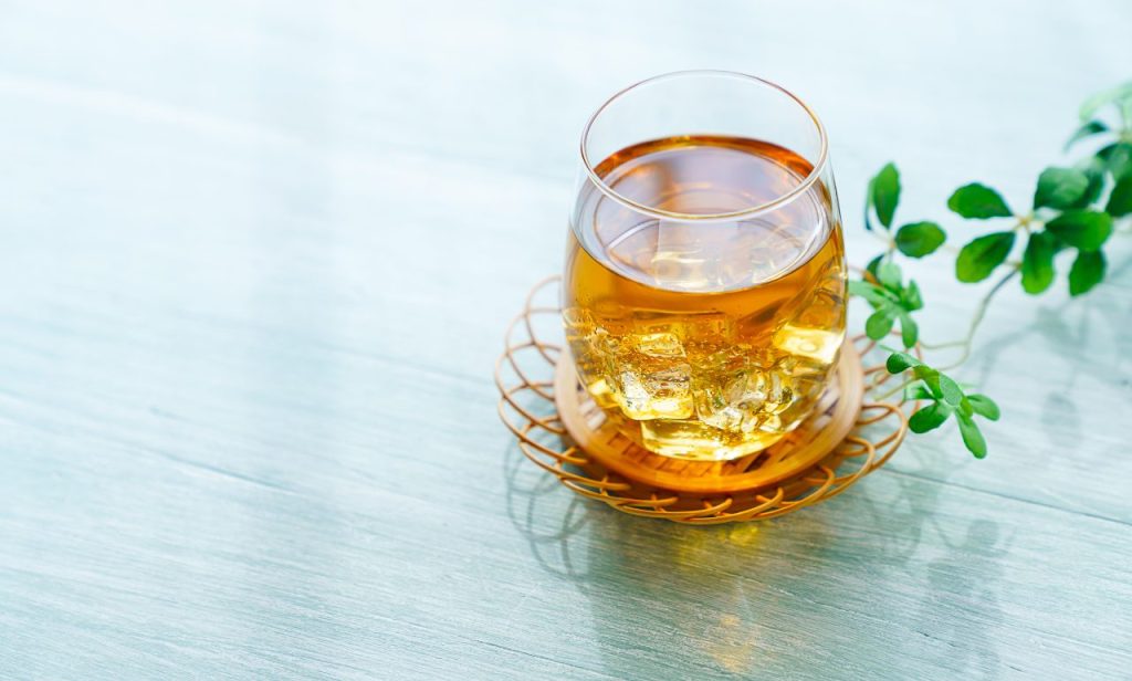 Mugicha is a caffeine-free tea made from roasted barley, served cold during summer. It has a mild, nutty flavor and is highly refreshing and hydrating.